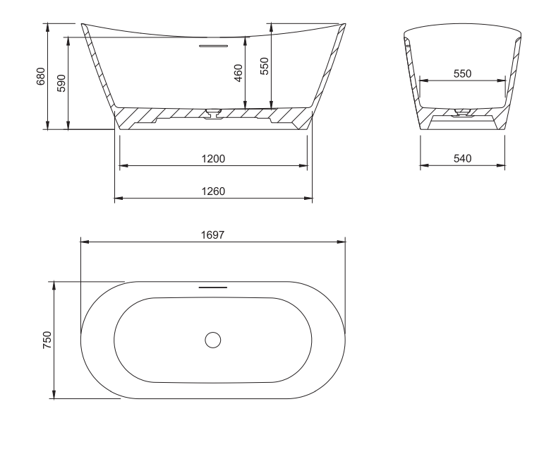 • Maciço e sem emendas: O composto é incrivelmente sólido sem ser pesado e é feito a partir de um molde, portanto sem emendas, o que resulta em um banho sem rangidos