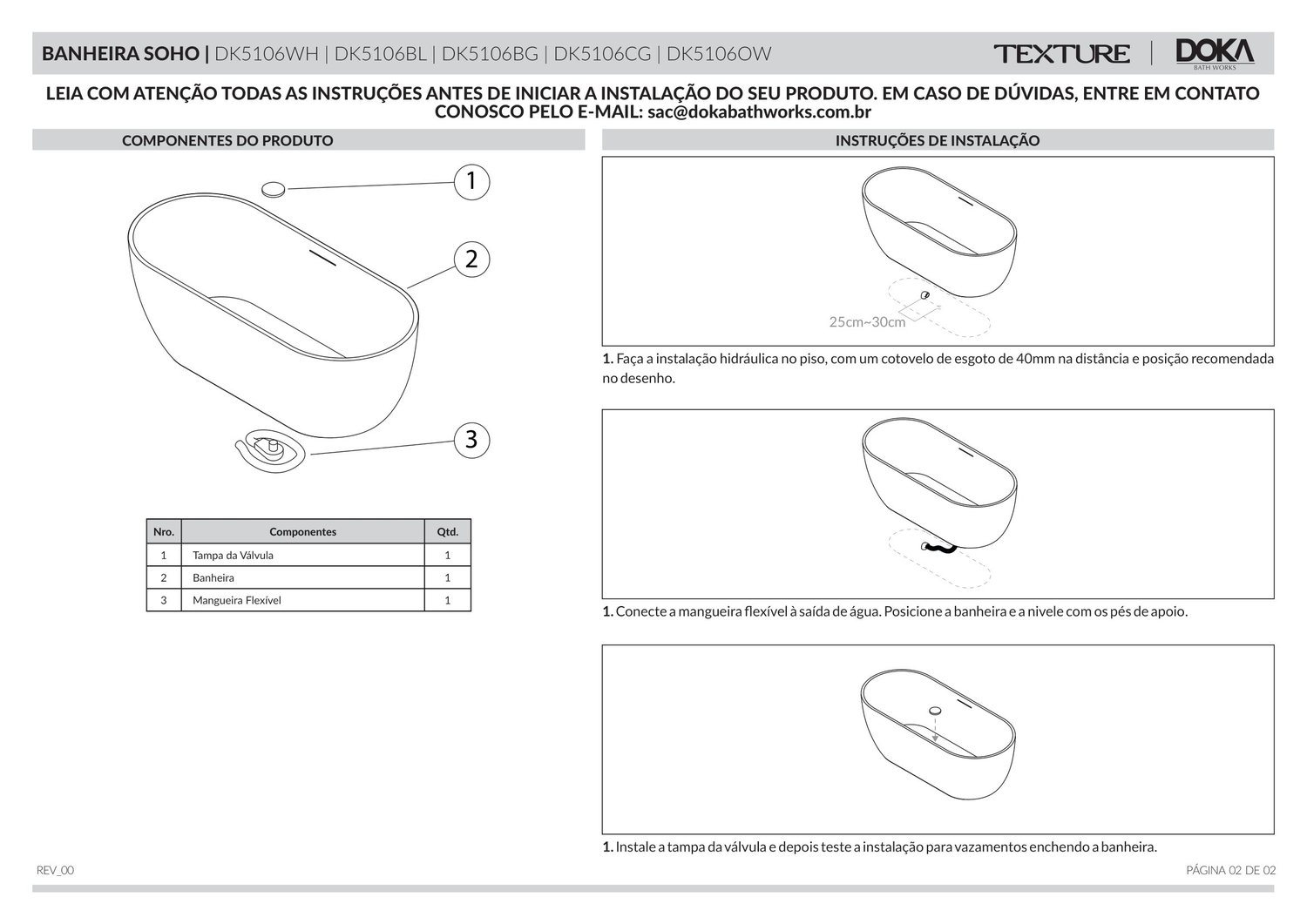 • Facil Instalação: Além de não necessitar de alvenaria, pois são modelos de design exclusivo e freestanding, os produtos são enviados com todo o kit necessário para instalação.