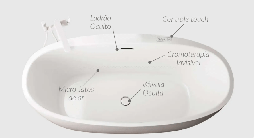 • Sistema de Jatos de Ar Invisíveis (+200 microjatos de ar na base interna da banheira)