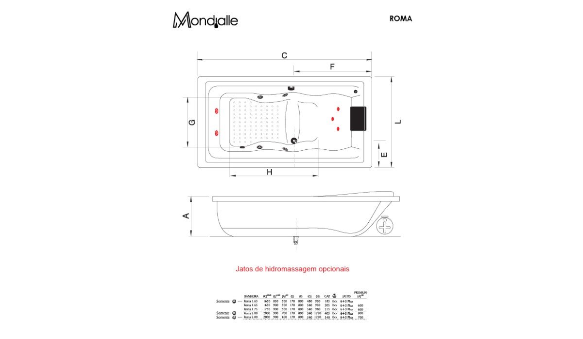 Esta banheira pode ser fabricada com hidromassagem ou sem hidromassagem