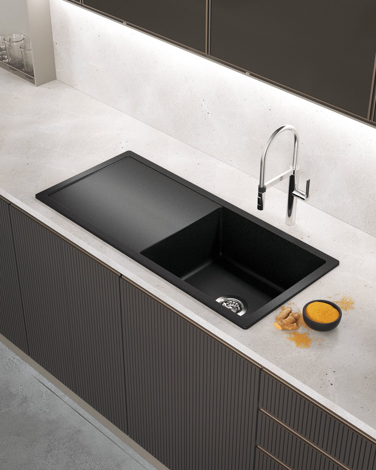 A cuba Açafrão é como o próprio tempero; essencial. A área molhada da cuba permite o apoio de ingredientes no preparo de alimentos entre outros.