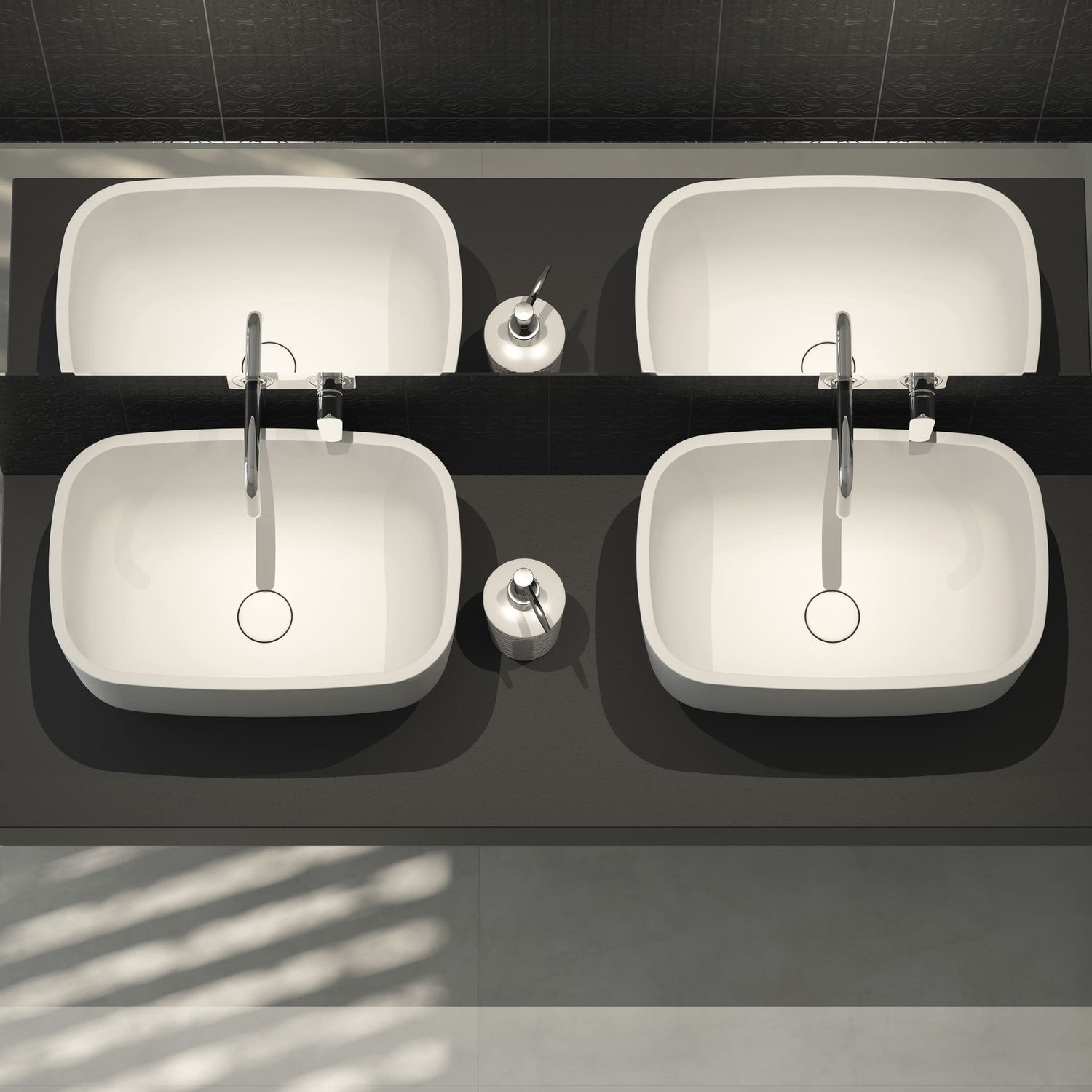 Em formato ousado, a Cuba Ametista 26 foi inspirada nas tendências de design e traz uma solução inovadora para a decoração de banheiros e lavabos. É muito prática no dia a dia, pois sua profundidade e largura proporcionam conforto máximo na utilização, nenhum respingo e escoamento perfeito. Destaque para a tampa da válvula, produzida no mesmo material da cuba, uma inovação tecnológica da Sabbia que pode ser facilmente retirada para manutenção.
