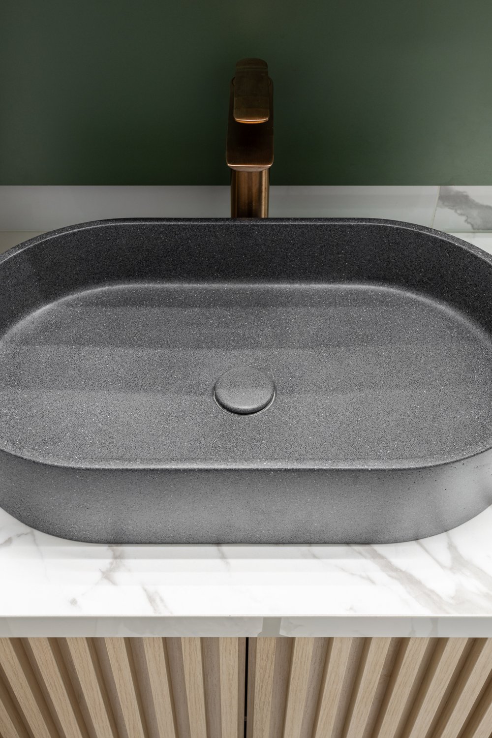 A Cuba Oval GeoStone surpreende pelo design moderno e diferenciado, que traz aos espaços de banho personalidade e elegância.