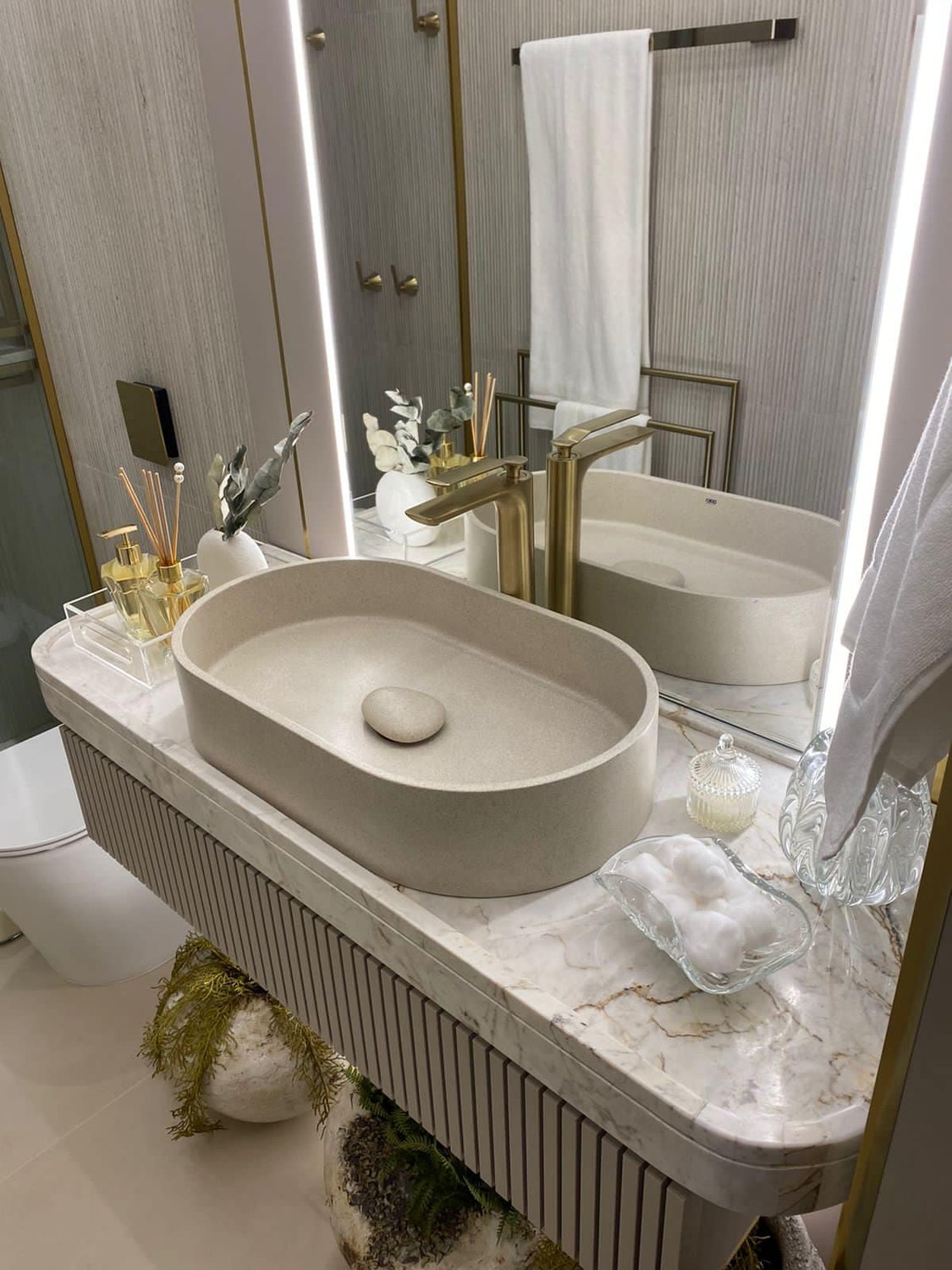 A Cuba Oval GeoStone surpreende pelo design moderno e diferenciado, que traz aos espaços de banho personalidade e elegância.