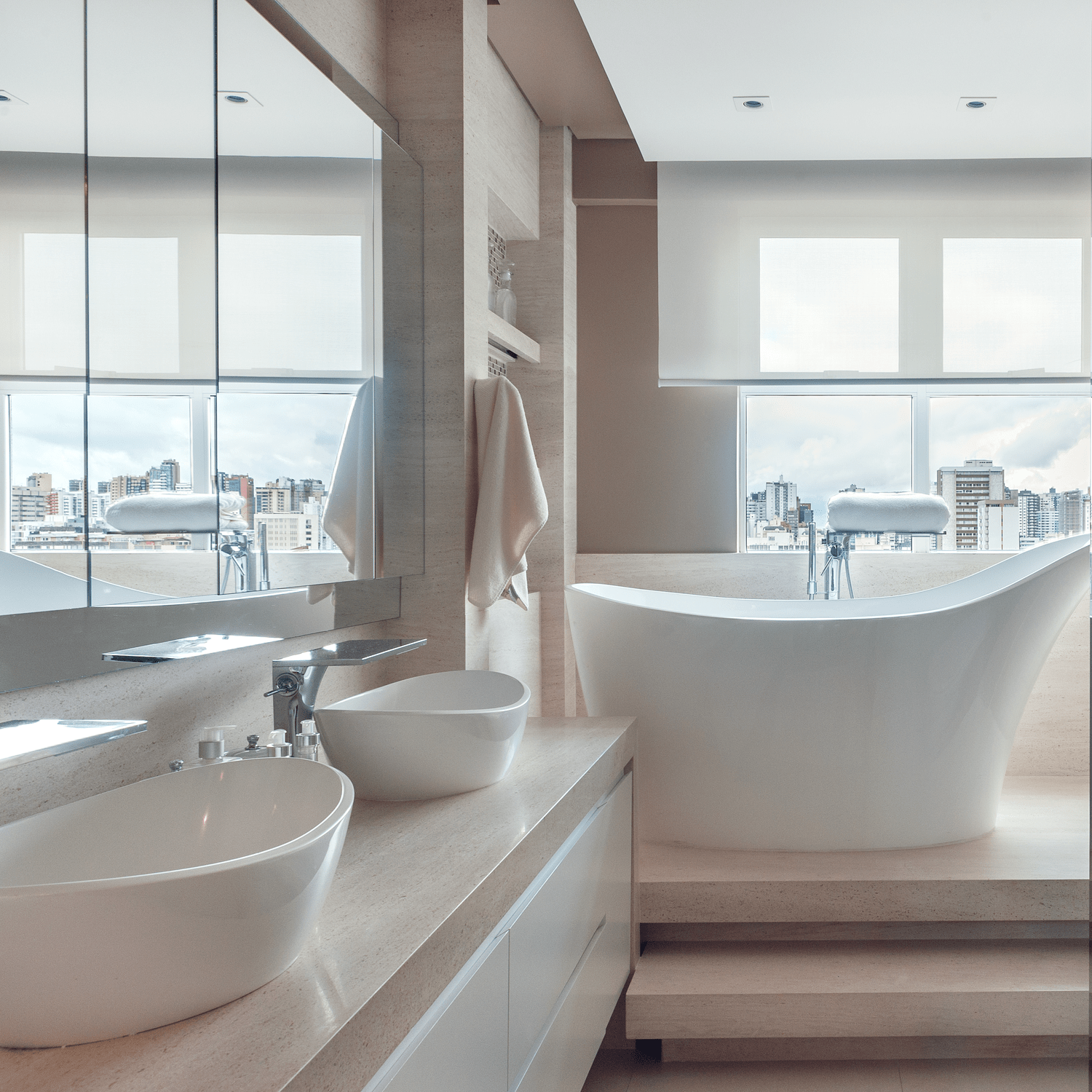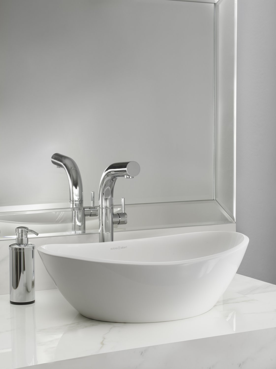 As cubas da coleção Victoria + Albert são fabricadas em QuarryCast®, um composto de rocha vulcânica e resina que garante alta resistência e acabamento uniforme. Inspiradas no design das banheiras da mesma linha, essas cubas oferecem praticidade e versatilidade para diferentes projetos.