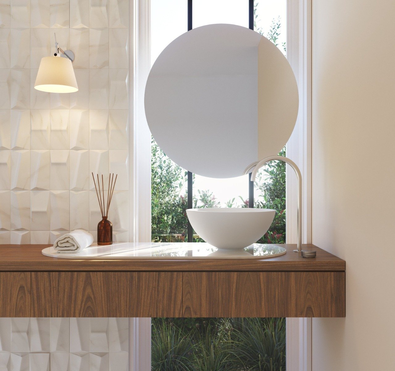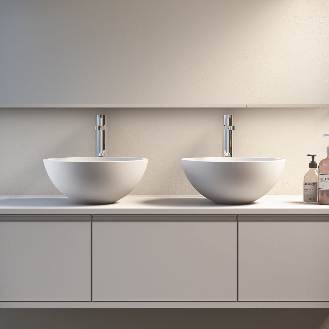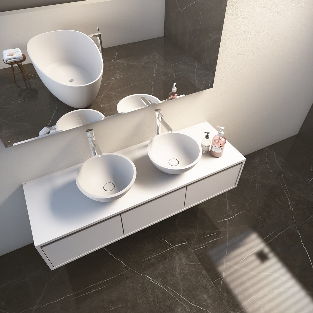 A Cuba Pérola é uma preciosidade em si. Uma verdadeira escultura em formato de semiesfera precisa e delicada. Produzida em Duramatt, o acabamento acetinado – fosco ou brilho – valoriza sua forma única e escoamento eficiente. A Cuba Pérola é confeccionada em dois tamanhos, 16 cm ou 22 cm de altura, que se adequam aos mais variados projetos. A tampa da válvula, produzida no mesmo material, é uma inovação tecnológica da Sabbia e pode ser facilmente retirada para limpeza