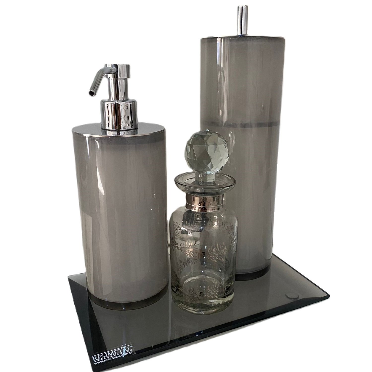Kit com Saboneteria Liquida e Porta Escovas acompanhado com Bandeja Slim tudo no tom Fumê