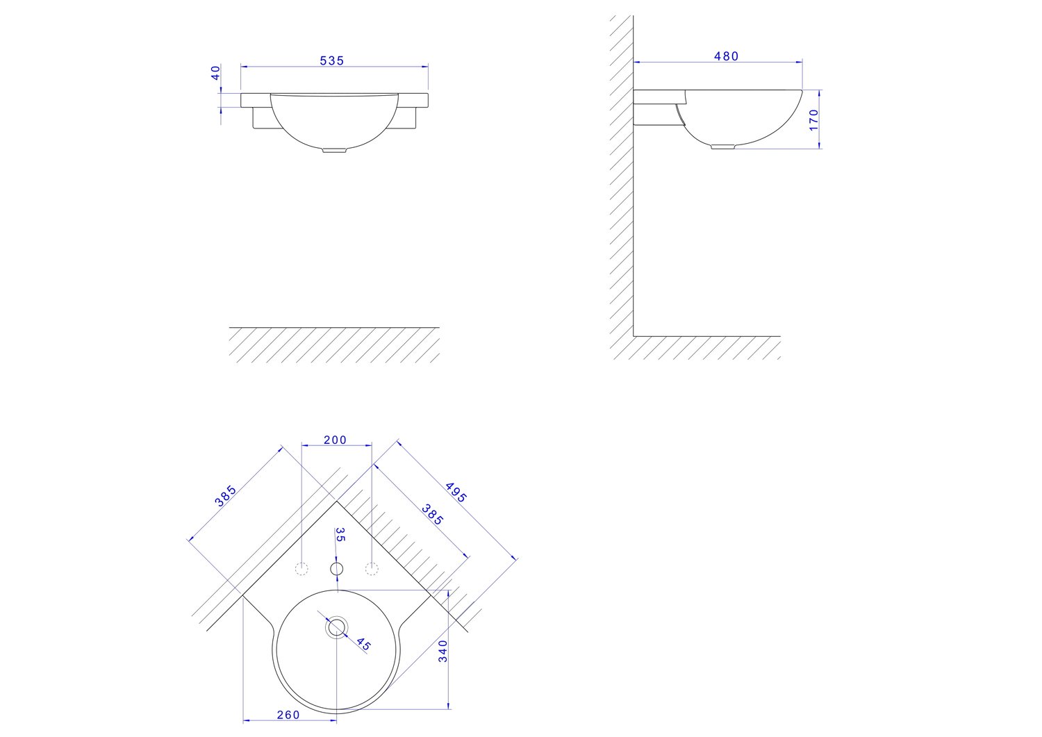 Lavatório suspenso de canto com mesa L.76.17 Deca