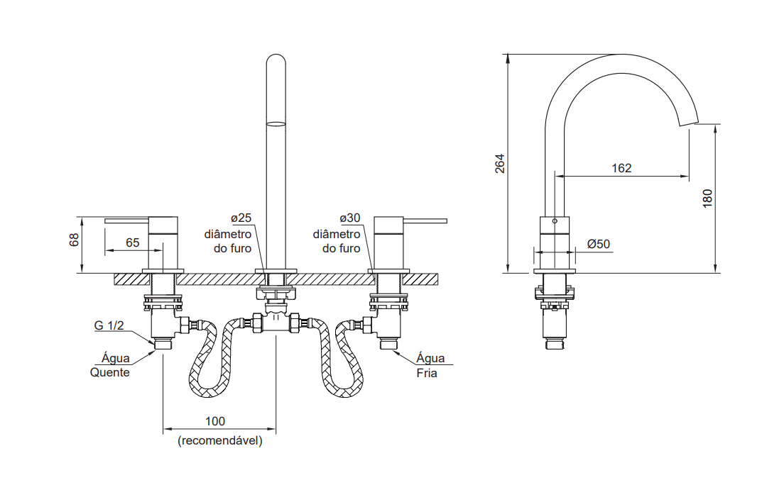 Pressão mínima: 2 MCA | Recomendada: a partir de 4 MCA | Pressão máxima: 40 MCA