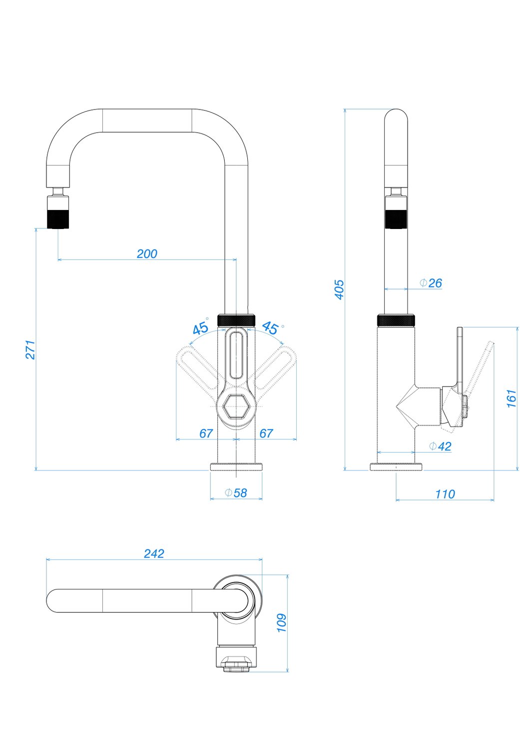 Monocomando de cozinha de mesa Gourmet Industrial com borracha na cor Preta
