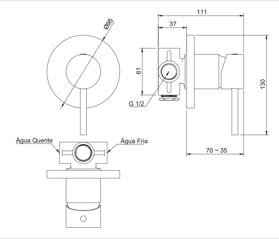 A condição de trabalho deste produto é com a pressão da água entre 4~40 MCA e a temperatura da água de 4~70°C