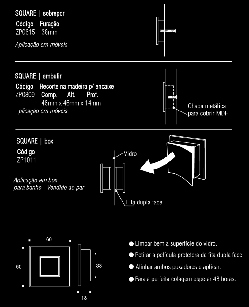 Puxador Porta Vidro com Cristais Swarovski Square Diamond Zen